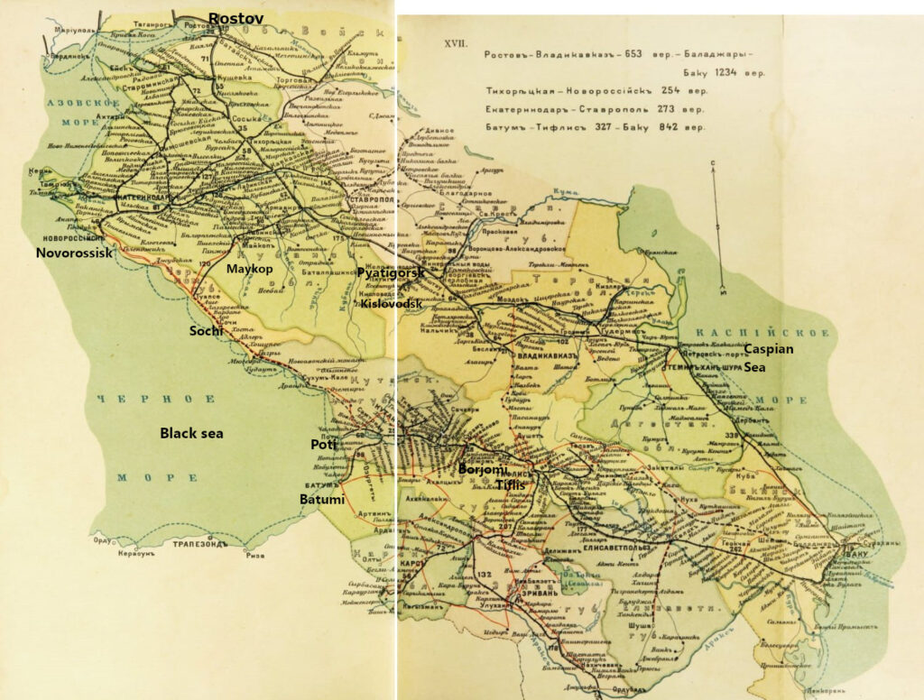 Link naar kaart met vluchtroutes uit Kislovodsk in 1918.