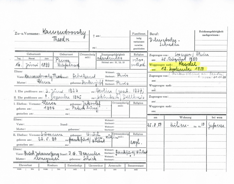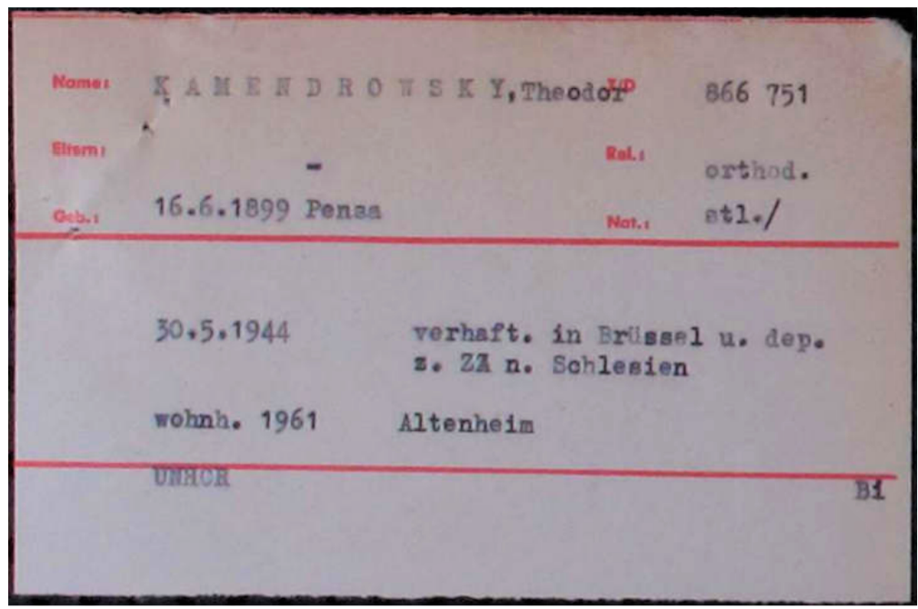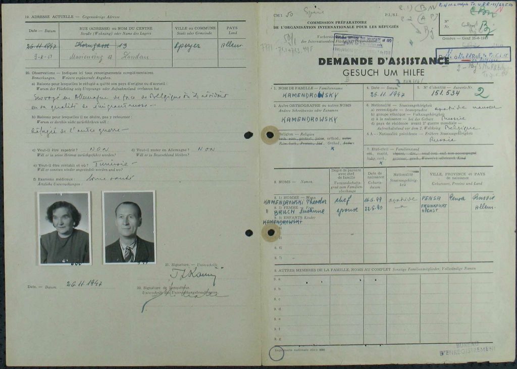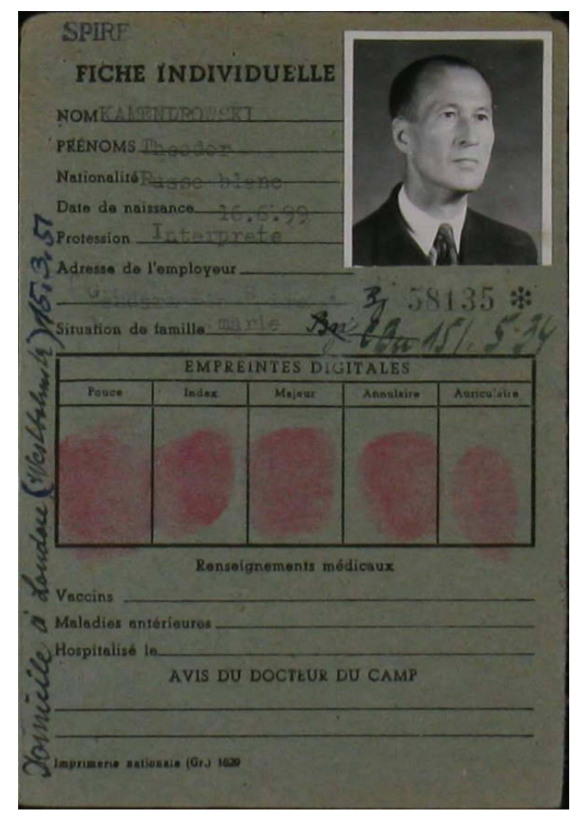 Feodor’s Fiche Individuelle, used as registration of the DPs (Displaced Persons) and for administration in the DP camps after liberation