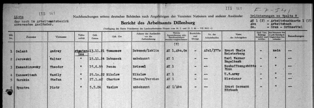 In other papers, I discovered that Feodor worked from July 1944 till March 1945 as a forced labourer in the Nazi Labour Camp Langen-Bielau, a subcamp of Groß-Rosen, working for the Factory Siling.