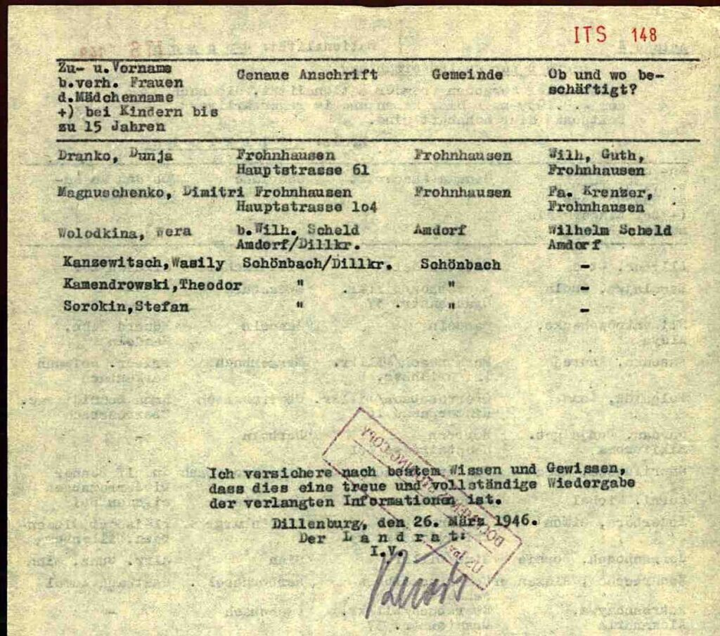 Report due to Allied orders in the American occupation zone, Labor Office Dillenburg