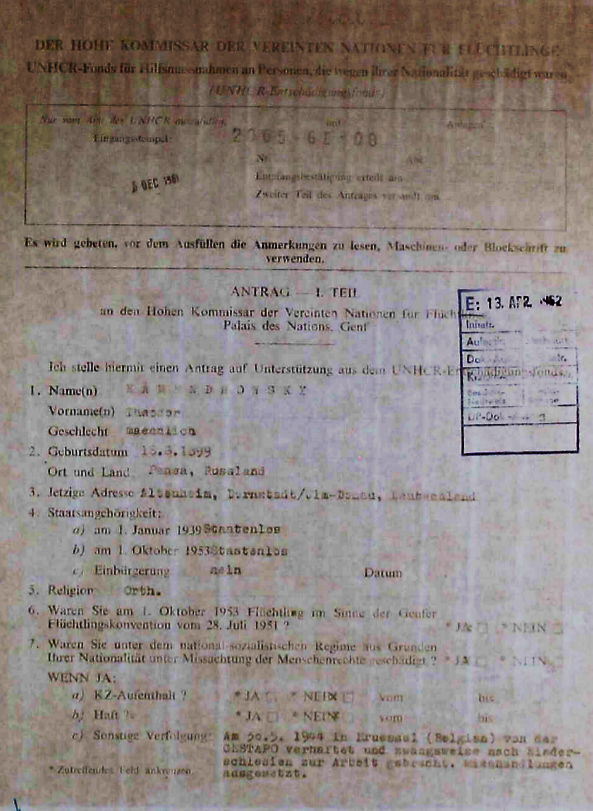 From June 1946 they lived in Speyer, Korngasse 23. Next, they lived in Landau, Germany. And in 1950 they asked for assistance for immigration Tunisia, a colony of France at the time. (In Tunisia, there was a small community of Russian refugees and there are still two Russian Orthodox churches. But in 1960 Tunisia gained independence and most Europeans left.)