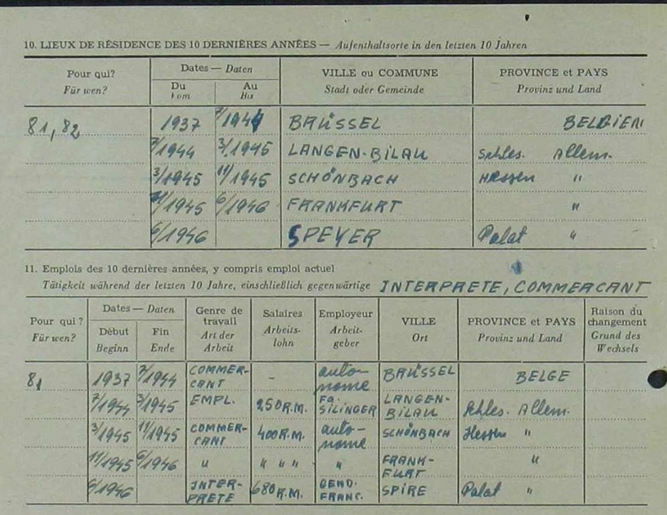 According to the ‘Gesuch um Hilfe’, they lived in Frankfurt from November 1945 until June ’46. Though according to working permit papers, he also worked on the Neuhoffnungshuette factory in Sinn, Germany during this time.